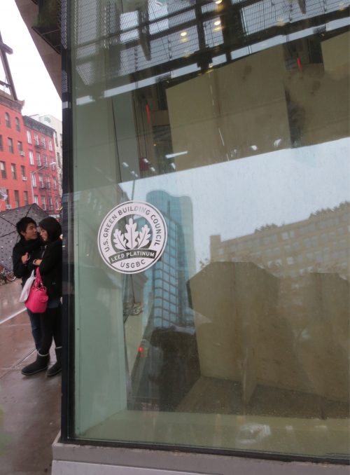 41 Cooper Square bâtiment est le premier laboratoire universitaire certifié LEED dans la ville de New York, avec une cote de Platine pour ses initiatives vertes avancées de construction. Dans sa construction, il a été utilisé principalement l’acier, l’aluminium, le verre et le béton, ce dernier visible dans les colonnes structurelles inclinées extérieures et une partie du coffrage de façade arrière où les marques ont été utilisés comme décoration.