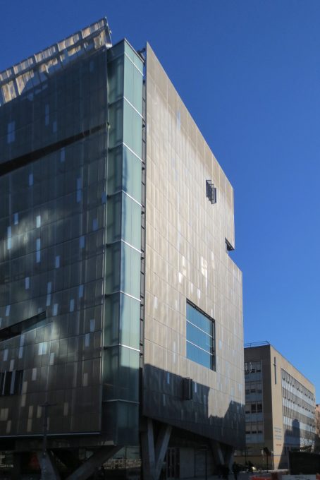 En interne, le bâtiment est conçu comme un véhicule pour favoriser la collaboration et le dialogue interdisciplinaire entre les trois écoles de l’université, auparavant situés dans des bâtiments séparés.