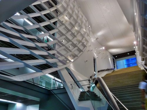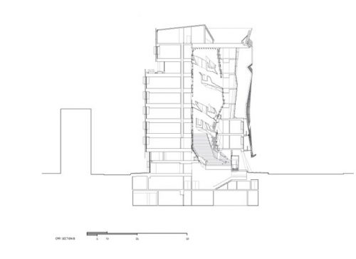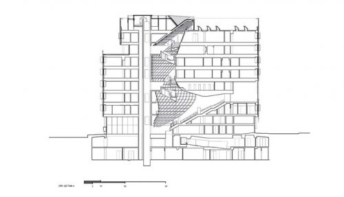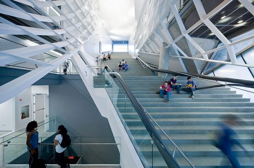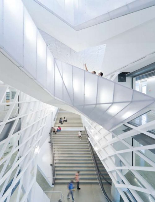 Cette place verticale est le cœur social de l’immeuble, fournissant un endroit pour les réunions impromptues ou planifiées, réunions d’étudiants, des conférences et un débat intellectuel qui définit le milieu universitaire.