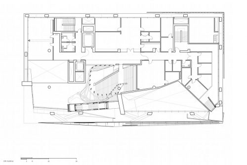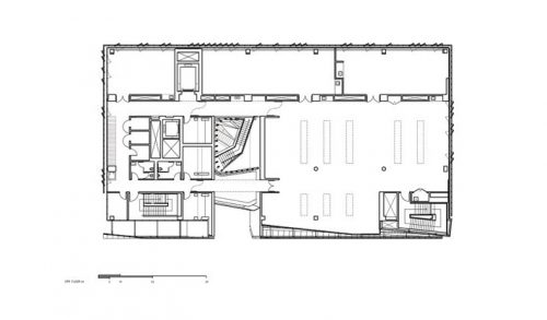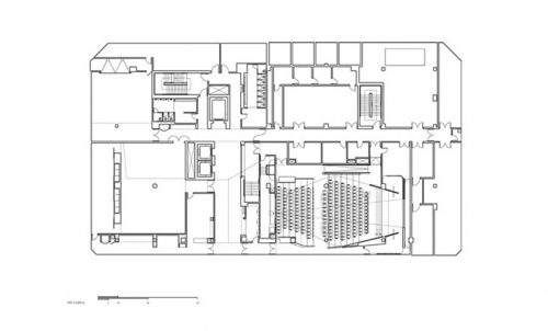 Transparences visuelles et des espaces publics accessibles relient l’institution avec son contexte urbain au niveau physique, social et culturel. Au niveau de la rue, la façade transparente invite le quartier d’observer et de participer à l’intensité de l’activité qu’il contient. Beaucoup de fonctions publiques, une galerie d’exposition, salle de réunion et un auditorium de deux cents places sont disponibles dans un niveau souterrain.