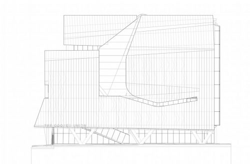 En réponse à son contexte urbain, la façade sculptée établit une identité distincte pour Cooper Square. L’entrée de la courbe du bâtiment se lève pour attirer les gens dans la salle, dans un geste de déférence pour le bâtiment historique de la Fondation. La façade enregistre le profil incurvé emblématique comme un atrium figure centrale de verre qui semble être sculpté sur la façade de la Troisième Avenue, qui relie le centre créatif et social de l’immeuble à la rue.