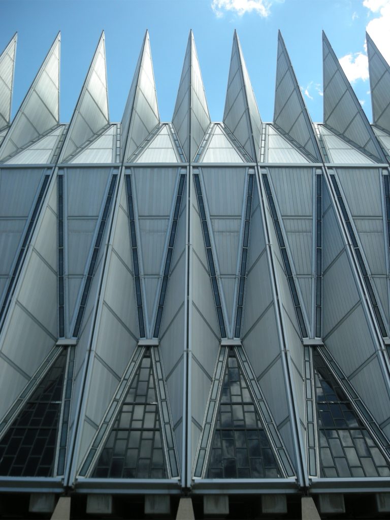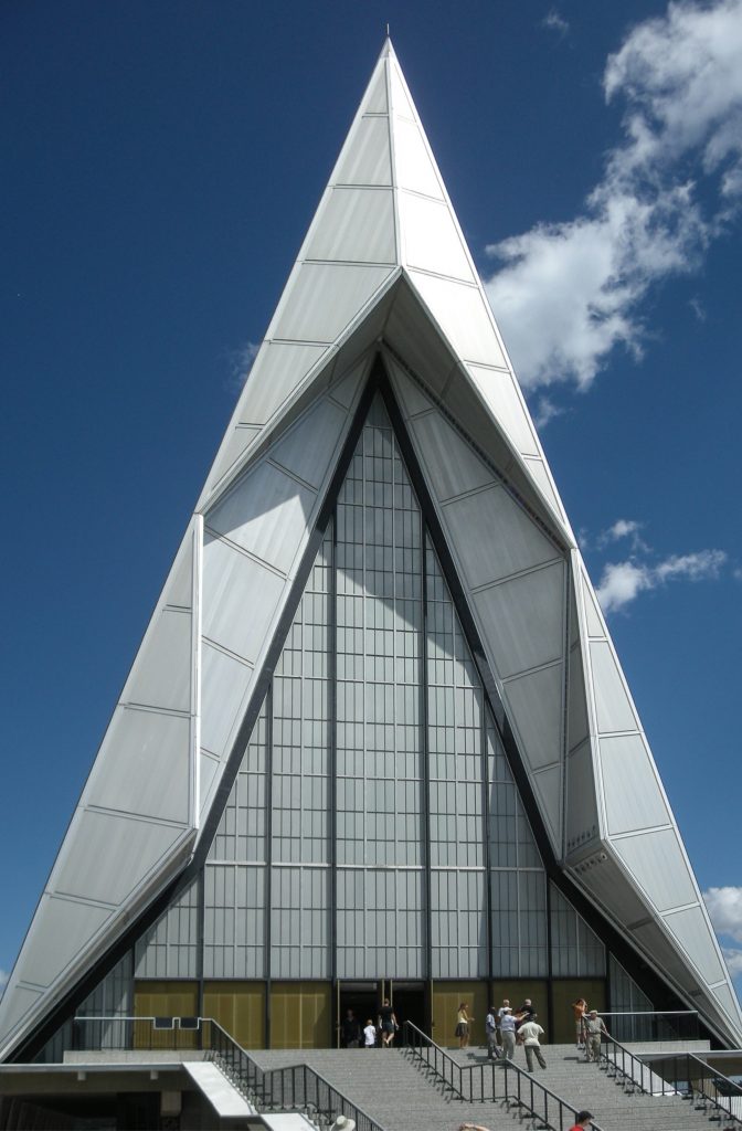 La chapelle de l’Air Force Academy des États-Unis est un édifice religieux achevé en 1962 dans le domaine des cadets, au nord de Colorado Springs, dans la zone connue sous le nom El Paso County, Colorado , États-Unis. Avec 46m de haut est placé sur une zone adjacente au podium Cour d’Honneur.