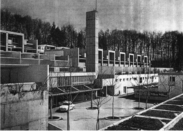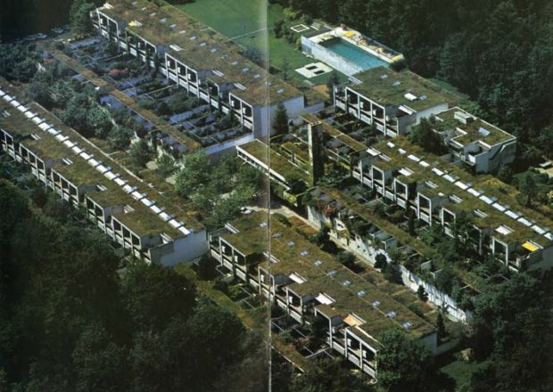 Le Siedlung Halen ou Cologne, comprenant 79 maisons de ville groupées en rangées avec des services communs qui complètent un usage résidentiel, est entouré par une forêt luxuriante qui met en évidence leur statut d’artefact immergé dans la nature.