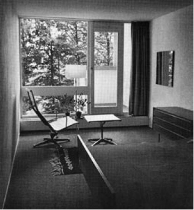 Il est à 5 km. Berne et est l’œuvre des architectes Atelier 5, disciples éminents de Le Corbusier, que ce projet mené à sa recherche logique sur la maison d’une baie étroite et profonde unique.