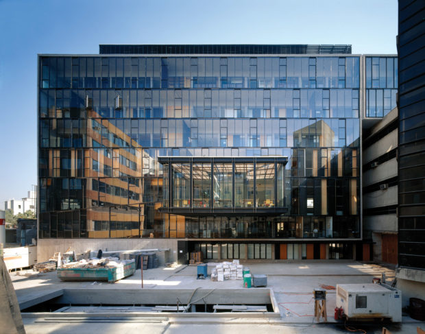 La circulation large, ouverte et ensoleillée, la façade nord ont été générés pour éviter une auto étanche à l’air intérieur, comme cela arrive souvent dans les immeubles de grande hauteur. Chacune est conçue comme un morceau de terrain de jeux qui avaient été coupés et a grandi à doter chacun de ces niveaux d’espace d’expansion possible de recréer ce particulier à l’intérieur – extérieur relation qui se produit dans l’ancien cloître. La géométrie changeante de l’appui intégré à chaque coureur une variété de situations élémentaires, allant du studio isolé sur une espèce de cabines fermées ou plutôt la conversation intime d’un couple, à des réunions d’étudiants entre les heures de classe spacieuses, les situations ces tout, de la formation et de la vie universitaire centrale.