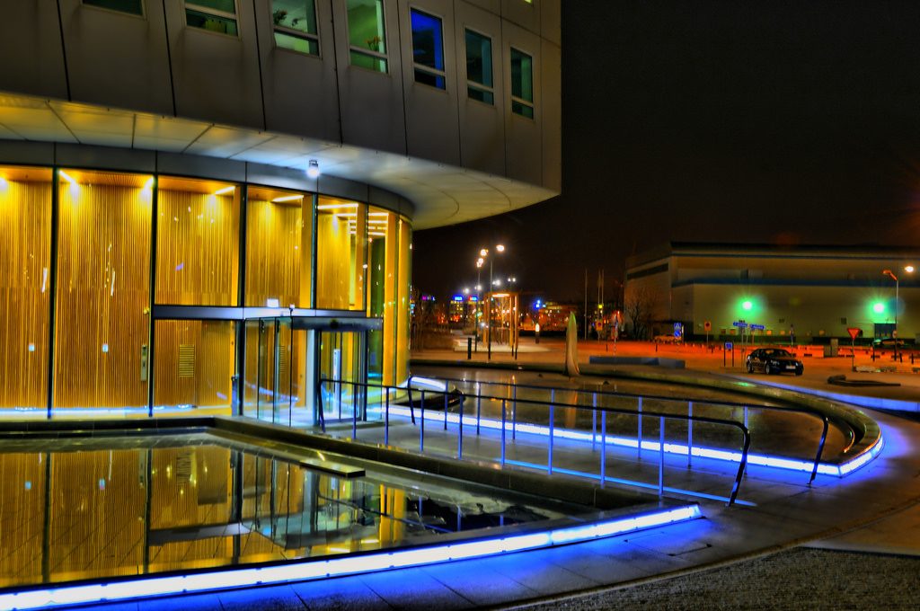 Le bâtiment est dans un quartier urbain dégradé de la transformation d’un espace industriel avec des équipements obsolètes à un ensemble résidentiel, de loisirs et d’affaires, par la mer Baltique.