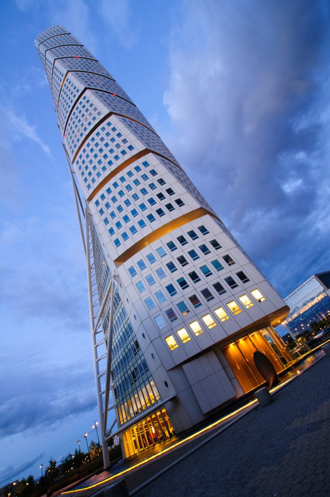 Turning Torso (rotation du torse) est un gratte-ciel résidentiel de 190 mètres et 54 étages situé dans la ville suédoise de Malmö, Suède. Il est le plus haut bâtiment résidentiel en Suède et le second en Europe (à la date de son ouverture), conçu par l’architecte espagnol Santiago Calatrava.