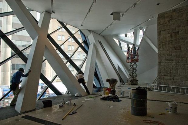 Il est considéré comme l’un des chantiers les plus complexes et la structure innovante de son système sophistiqué Amérique du Nord. Le bâtiment se compose de cinq structures prismatiques interconnectés poutres en acier et autonome coexister, mais pas structurellement attaché à la ROM d’origine du bâtiment plutôt que des ponts qui unissent.