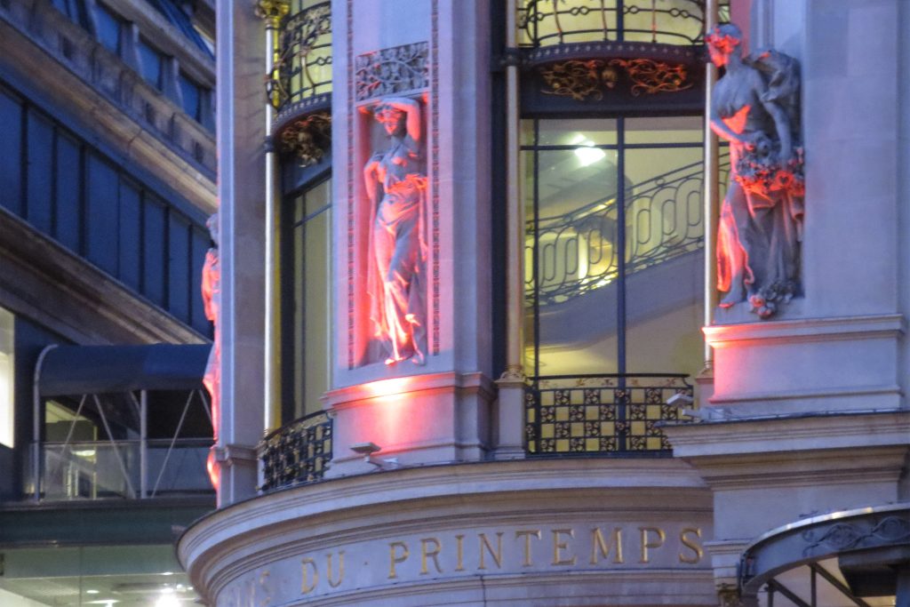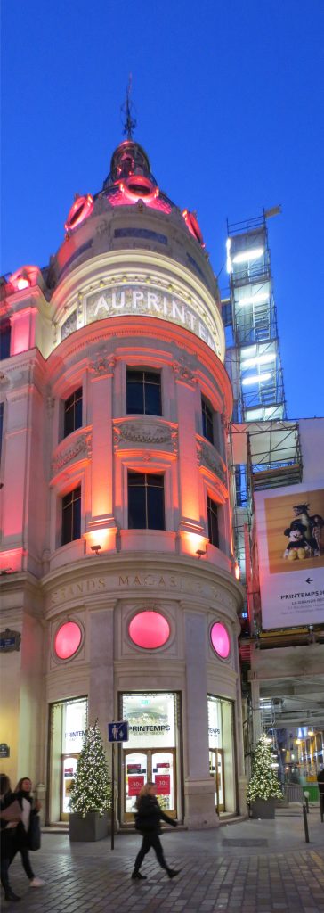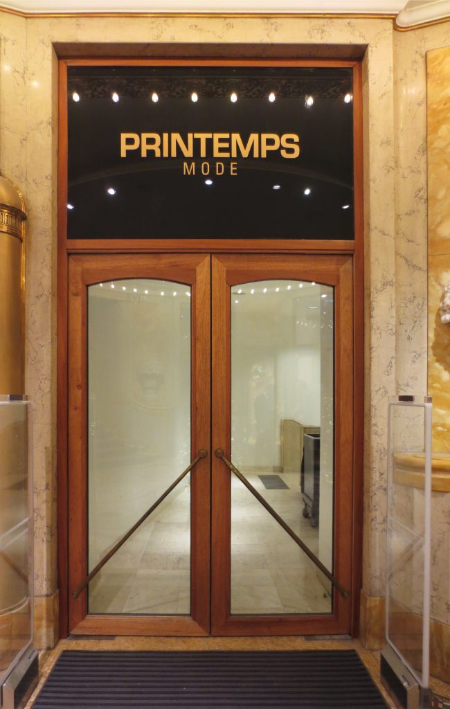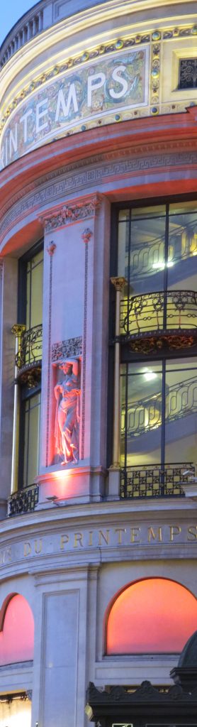 Le grand magasin Printemps également pionnier dans l’utilisation de motifs floraux et naturels, à la fois dans les installations de centres de décoration violette chaque premier jour du printemps, que l’utilisation de l’architecture Art Nouveau.