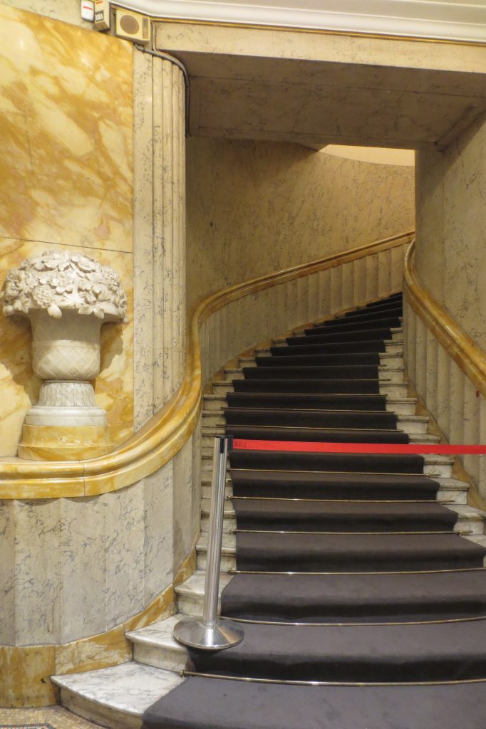 Plus René Binet rénové cet espace. L’architecte inclus un certain nombre de balcons donnant sur le grand atrium central. Il a également modifié la disposition linéaire de cette mise à l’échelle d’un centre de l’espace. Ce fut une composition avec des formes baroques dans le plan. Il a été affiché dans le centre de la cascade dans le hall et une végétation luxuriante. À partir du centre du rez de chaussée, d’une partie de la plante ou de la face grimpé deux volées d’escaliers rencontrés. Chacun a été divisé en deux branches réunies autour d’un jardin d’enfants où les plantes tropicales recevoir la lumière de la verrière. Enfin, deux autres vols d’escaliers venaient des deux côtés de l’axe transversal du premier étage. Une fois sur le premier étage d’un nombreux balcons disponibles autour de l’espace central à partir duquel vous pouvez le voir, le grand escalier et rangées de bureaux occupées produits bas. Longitudinalement l’espace était surmonté d’un verre de conception classique. Le décor se passe comme un modèle dans chaque section du toit, créant un motif répétitif qui vient de mettre un arrêt complet de détails concentriques de la partie centrale du verre.