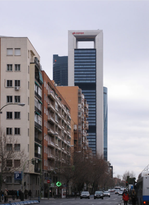 Avec 250 mètres de haut, le Cepsa Torre – Foster encore au début de 2015 le plus haut bâtiment en Espagne. Soulignant l’entrée du nouveau quartier des affaires de la façade de capitale espagnole rappelle à certains égards à une construction de «blocs lego » se dresse entre les tours qui l’entourent. Le gratte-ciel est à 250 mètres, et a ouvert en mai 2009. Une partie de connu sous le nom des quatre tours, construites sur les anciens terrains du complexe Real Madrid Sports City.