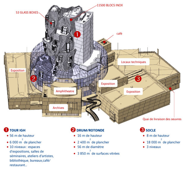 « …Nous souhaitions rendre hommage à l’environnement local, de « La Nuit étoilée » de Van Gogh aux majestueux paysages rocheux… Le tambour central évoque la forme de l’amphithéâtre romain… » (Frank Gehry)