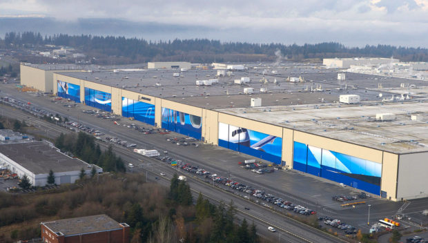 Usine de Boeing à Everette se compose de deux espaces séparés par une route. Ces deux espaces sont reliés par le seul pont privé qui traverse un chemin public dans l’État de Washington.