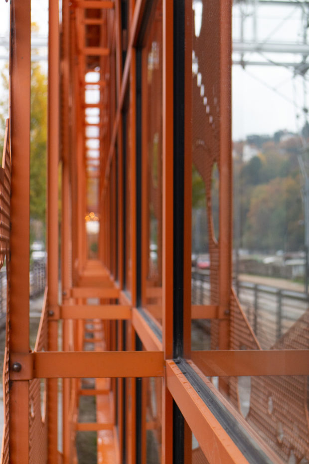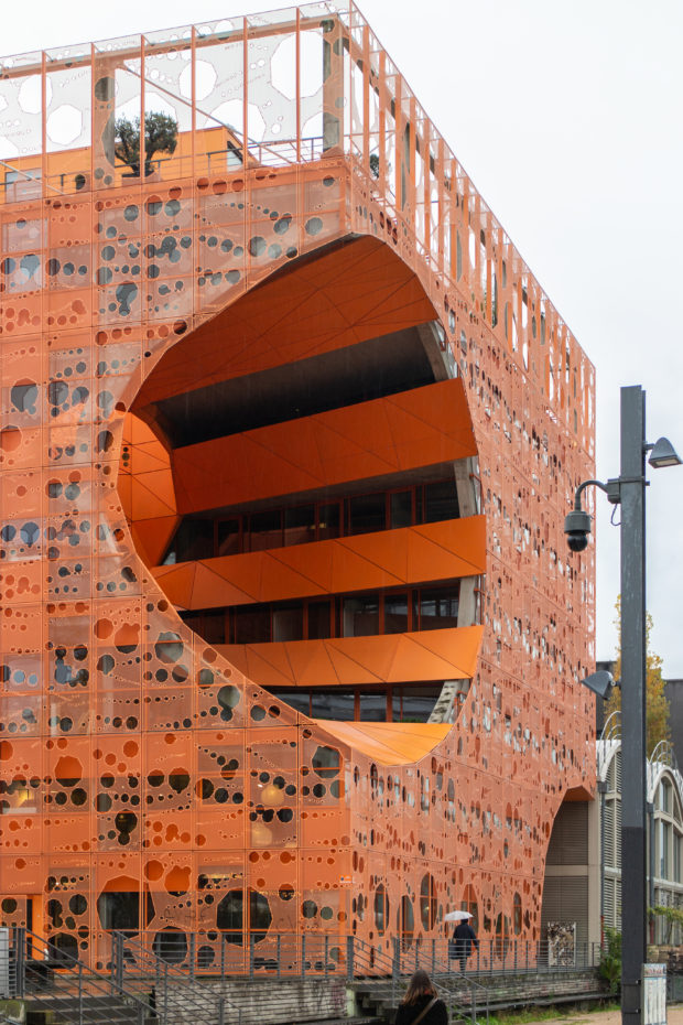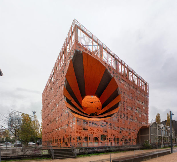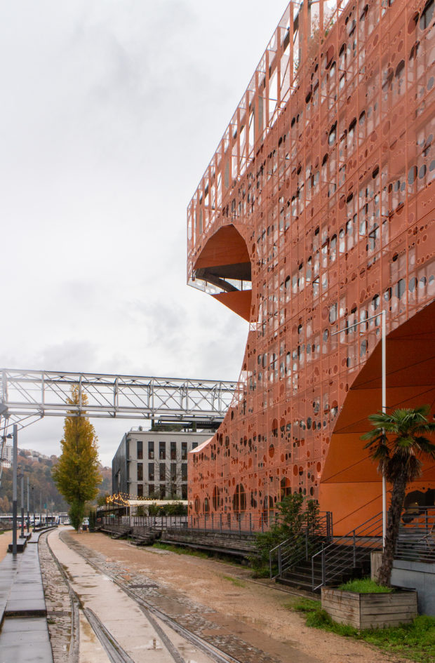 Le Cube Orange a été construite sur les rives de la Saône, près du confluent de ce dernier avec le Rhône à Lyon, Françe. Ce projet phare aideront à conduire l’ancien port fluvial de la ville, une ancienne zone industrielle d’entrepôts et de quais.