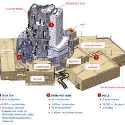 La Tour offre des espaces multifonctionnels sur 12 niveaux, incluant des salles d’exposition, des espaces de travail, de recherche et des lieux pour événements.